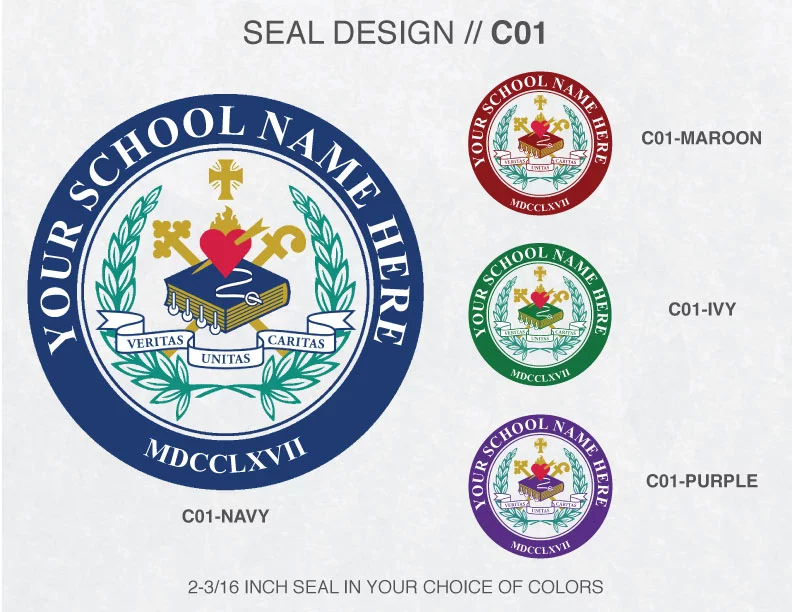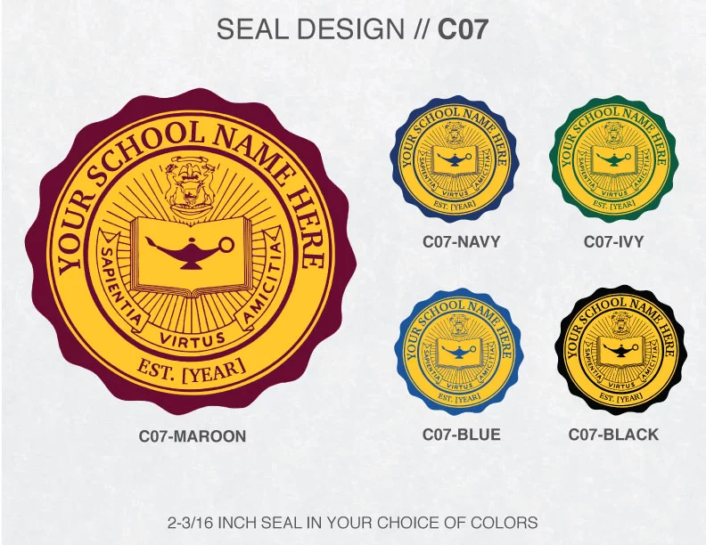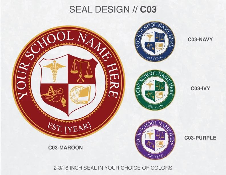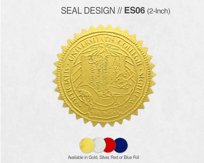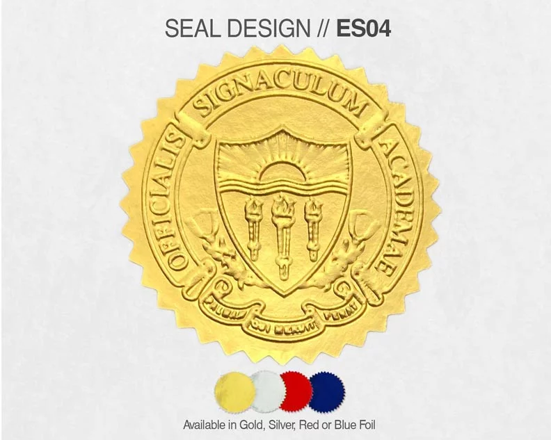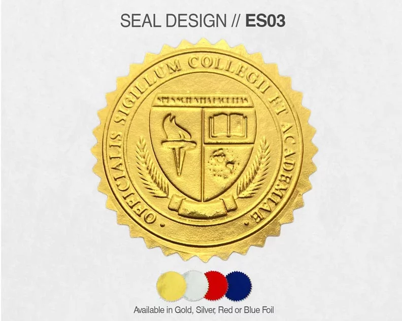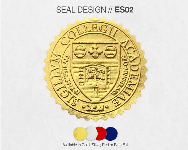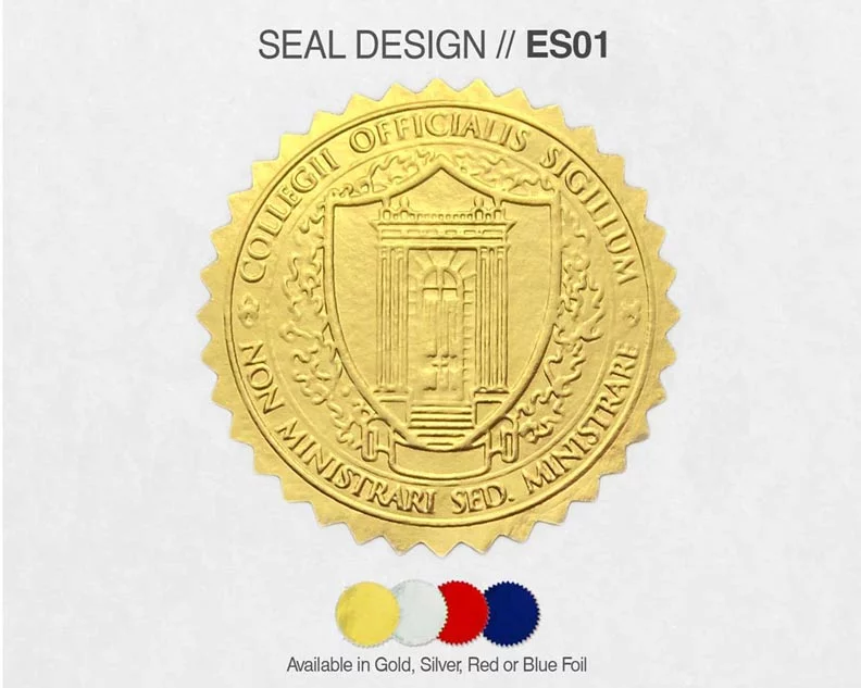 Below is a gallery of all of the fake diploma seal designs we currently offer. Hover or click on each image to view the seal design ID (ES01, etc.) or view a larger image.